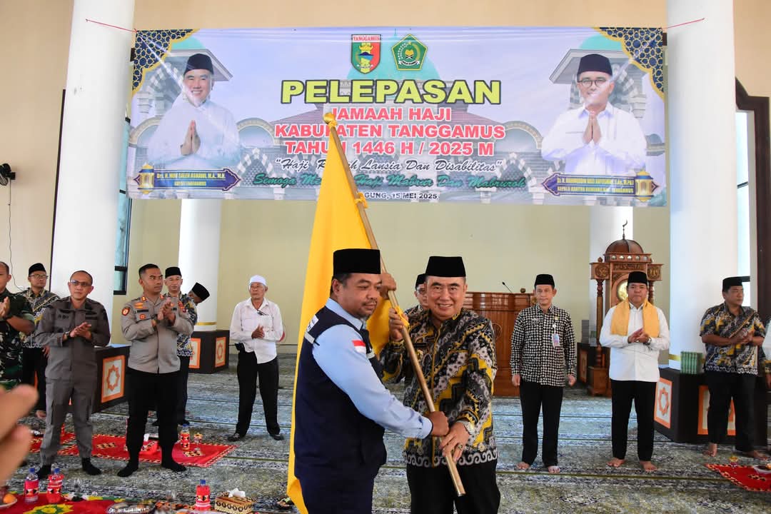 TANGGAMUS – Bupati Tanggamus Moh Saleh Asnawi melepas 412 Calon jemaah haji Tanggamus, Kamis, 15 Mei 2025.